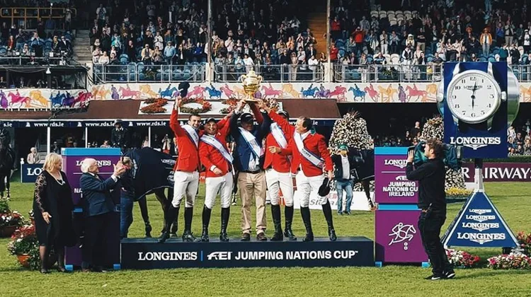 La dernière étape de Coupe des nations de première division de la saison 2018 s'est jouée cet après-midi à Dublin, la capitale de l'Irlande. L'épreuve reine du concours a tenu en haleine les (télé)spectateurs jusqu'au bout, ces derniers ayant dû attendre l'ultime rotation pour applaudir les vainqueurs et leurs dauphins. Son parcours, construit par le chef de piste irlandais Alan Wade, s'est en plus révélé beaucoup plus subtil qu'il n'y paraissait au début. Le large oxer numéro 2, la triple combinaison, et surtout la palanque numéro 6, élément qui succédait à la rivière, ont donné du fil à retordre à tous les participants.Ayant très mal débuté la compétition par un parcours à douze points signé Eugenio Garza Perez et Victer Finn DH Z, le Mexique a sacrément redressé la barre, parvenant à bien mieux appréhender les difficultés en seconde manche ! En effet, si un seul sans-faute a été comptabilisé au premier tour grâce à Federico Fernandez et Landpeter Do Feroleto, ses deux autres coéquipiers ayant écopé de quatre points, la seconde manche a totalisé trois scores vierges. Mention spéciale pour Patricio Pasquel et son fidèle cheval mexicain Babel, d'ailleurs vainqueurs d'une épreuve à 1,45m le week-end dernier au CSI 5* de Dinard, qui ont bouclé l'un des quatre doubles sans-faute de l'épreuve. Totalisant huit points après les deux manches, le Mexique a tenu jusqu'au bout et s'est imposé dans cette Coupe des nations. Cela faisait trente-sept ans que les Vestes rouges n'étaient pas venues au CSIO 5* de Dublin, ils y reviendront très certainement !