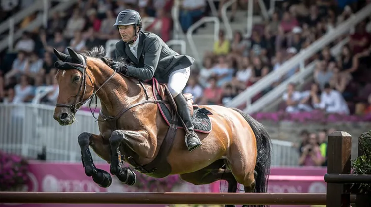 Ouvreur de l'épreuve, le triple vainqueur du Derby de La Baule a fait sa loi. Patrice Delaveau, en suprématie ce week-end puisqu'il a déjà remporté deux épreuves phares du CSI 3*, a déroulé un parcours rapide mais assuré, ne concédant pas le moindre point de pénalité avec Vestale de Mazure*HDC. Trois autres cavaliers ont réussi à abaisser son chronomètre ; le Britannique Nigel Coupe et le Français Come Couturier notamment, accusant douze points sur la piste. Plus rapide aussi sur Atomic Bomb, Emeric George a bien failli faire flancher Patrice Delaveau, mais n'a pu empêcher une faute sur l'entrée de double de verticaux... Finalement, personne n'est parvenu à voler la couronne du Normand. Concédant seulement un point de temps dépassé, s'étant bien appliquée tout au long du parcours, Margaux Rocuet, très motivée à en croire ses encouragements envers sa Victoria Barcelona, a pris une superbe deuxième place. Le poing en l'air et le large sourire ont attesté de la joie immense de la Tricolore, à quelques kilomètres de chez elle ! Mention spéciale pour la Selle Français, fille de Huppydam des Horts, qui est née dans l'élevage familial.