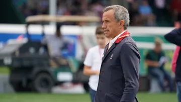 Voici la réaction du chef d'équipe de la France Philippe Guerdat après la première manche de la ...