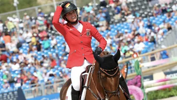 Voici la réaction de l’Irlandais Cian O’Connor à l’issue de la première manche par équipes des Jeux ...