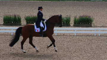 Dernier cavalier de l'équipe de France à dérouler dans le Grand Prix des championnats d'Europe de ...